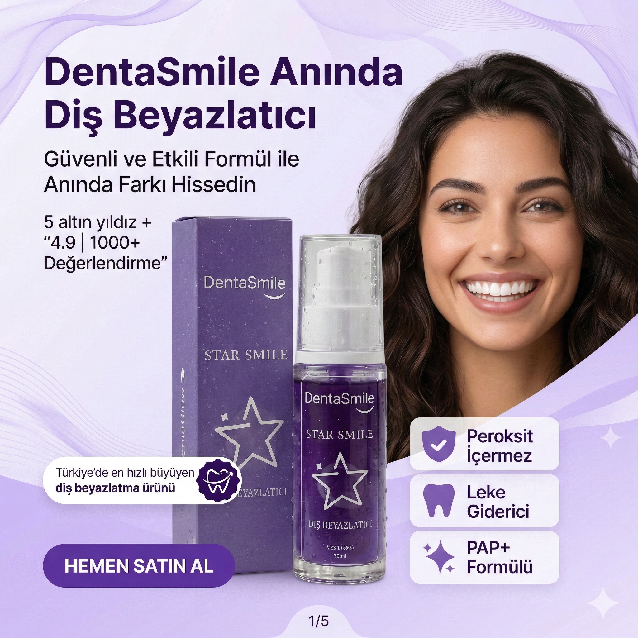 Evet, DentaSmile formülündeki bileşenler sayesinde plakları ve yüzeysel lekeleri temizlemeye yardımcı olurken aynı zamanda anında beyazlık etkisi sunar.